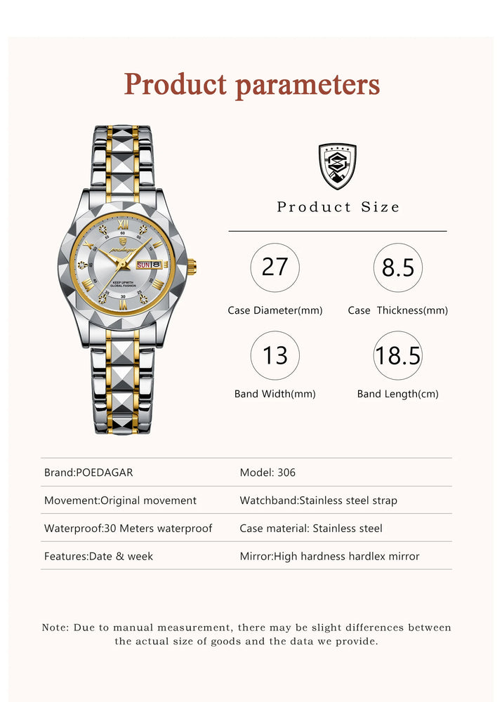 POEDAGAR Elegant Women Quartz Watch – Waterproof & Luminous Stainless Steel reloj + Box
