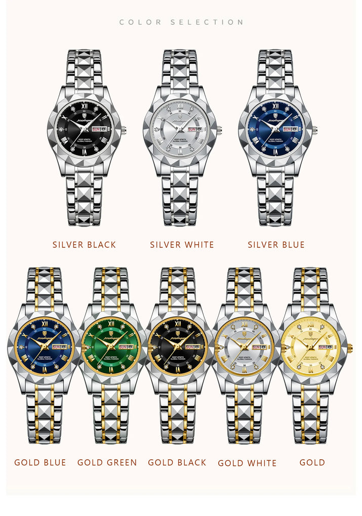 Elevate your style with this elegant quartz watch, designed for fashion-forward women who appreciate sophistication and practicality with features like waterproofing and luminous hands.